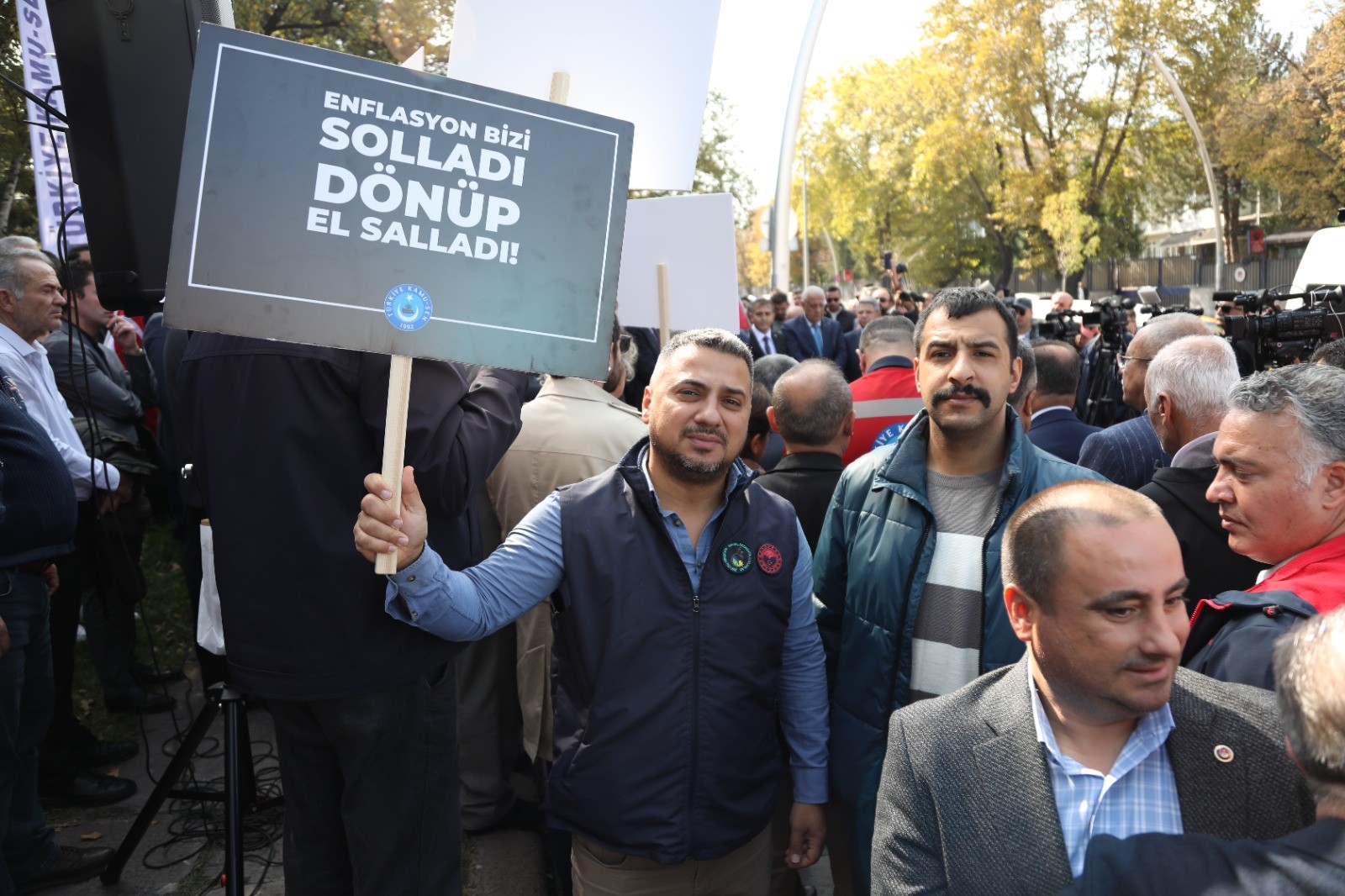 “Bugün burada, Türkiye Büyük Millet Meclisi’nin önünde; alın terimizin, emeğimizin, hakkımızın sesi olmak için toplandık! 2026 yılı bütçesi cuma günü Meclis’te görüşülmeye başlanacak ama o bütçede memur yok, emekli yok, alın teri yok! Var olan; rakamların, hedeflerin ve hayallerin ardına gizlenmiş bir adaletsizliktir. Açıklanan son rakamlardan görüyoruz ki enflasyon yeniden tırmanışa geçti, mutfakta yangın büyüyor!