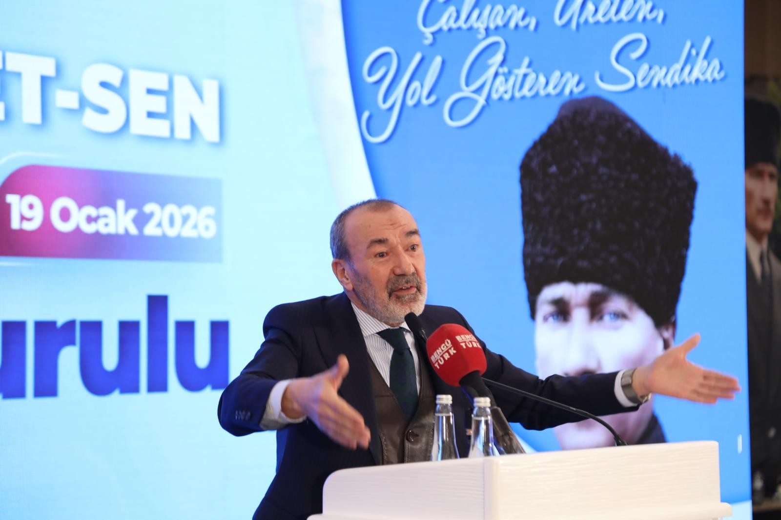Yerel hizmet iş kolunun büyüklüğüne de dikkat çeken Tabakoğlu, 30 büyükşehir, 51 il belediyesi, yüzlerce ilçe ve belde belediyesi ile 1.500’ün üzerinde iş yerinde teşkilatlanmış büyük bir aile olduklarını belirtti. İş kolunun sorunlarının Sosyal Denge Sözleşmesi, vergi dilimleri, görevde yükselme, itfaiye ve zabıta personelinin kronikleşmiş problemleri başta olmak üzere çok iyi bilindiğini vurgulayan Tabakoğlu, bu sorunların Türk Yerel Hizmet-Sen’in dik duruşu ve çözüm odaklı yaklaşımıyla aşılacağına olan inancını dile getirdi.