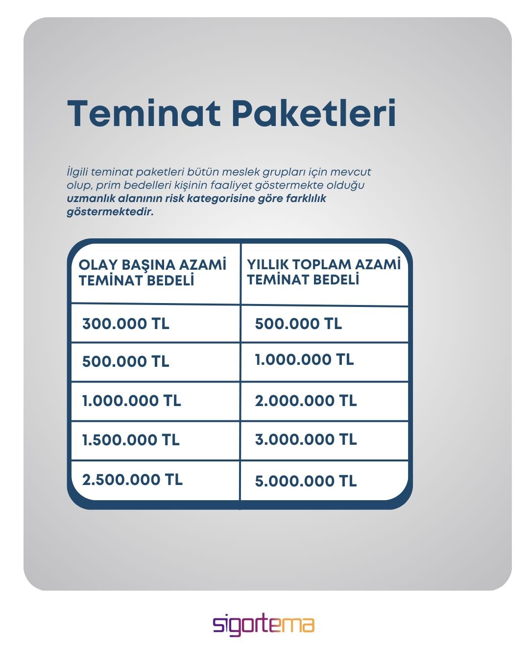 *İlgili teminat paketleri bütün meslek