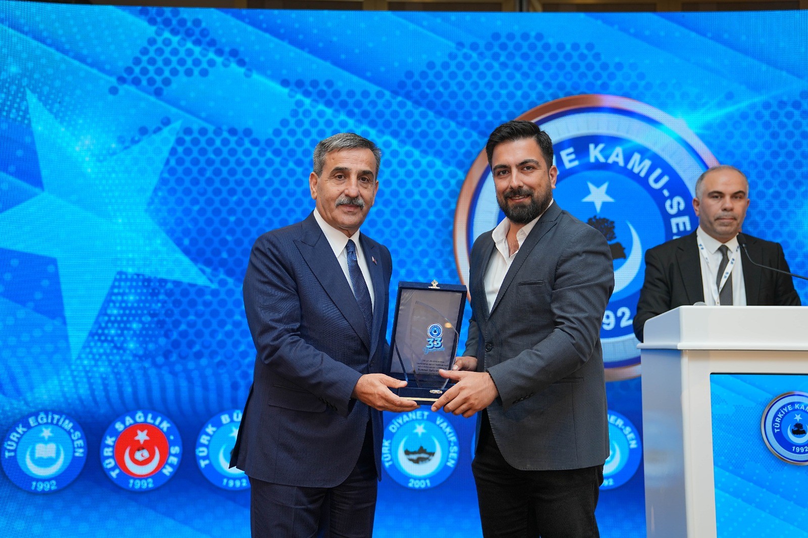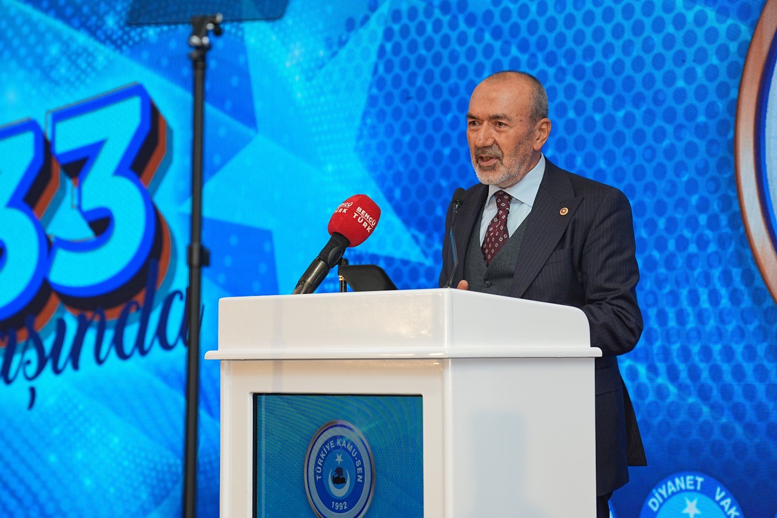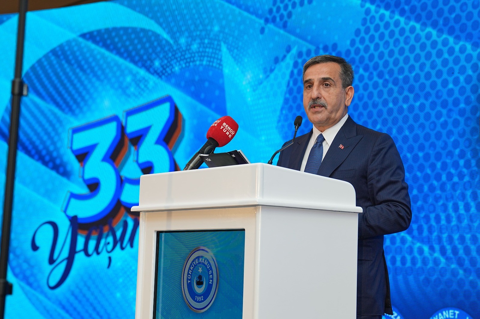 Bizler her zaman Türkiye Kamu-Sen’in ve  üyesinin yanındayız Türkiye Kamu-Sen Türkiye’nin en etkili konfederasyonudur, bizim gözbebeğimizdir. Tekrar 33. kuruluş yıl dönümünüzü kutluyorum.” dedi.