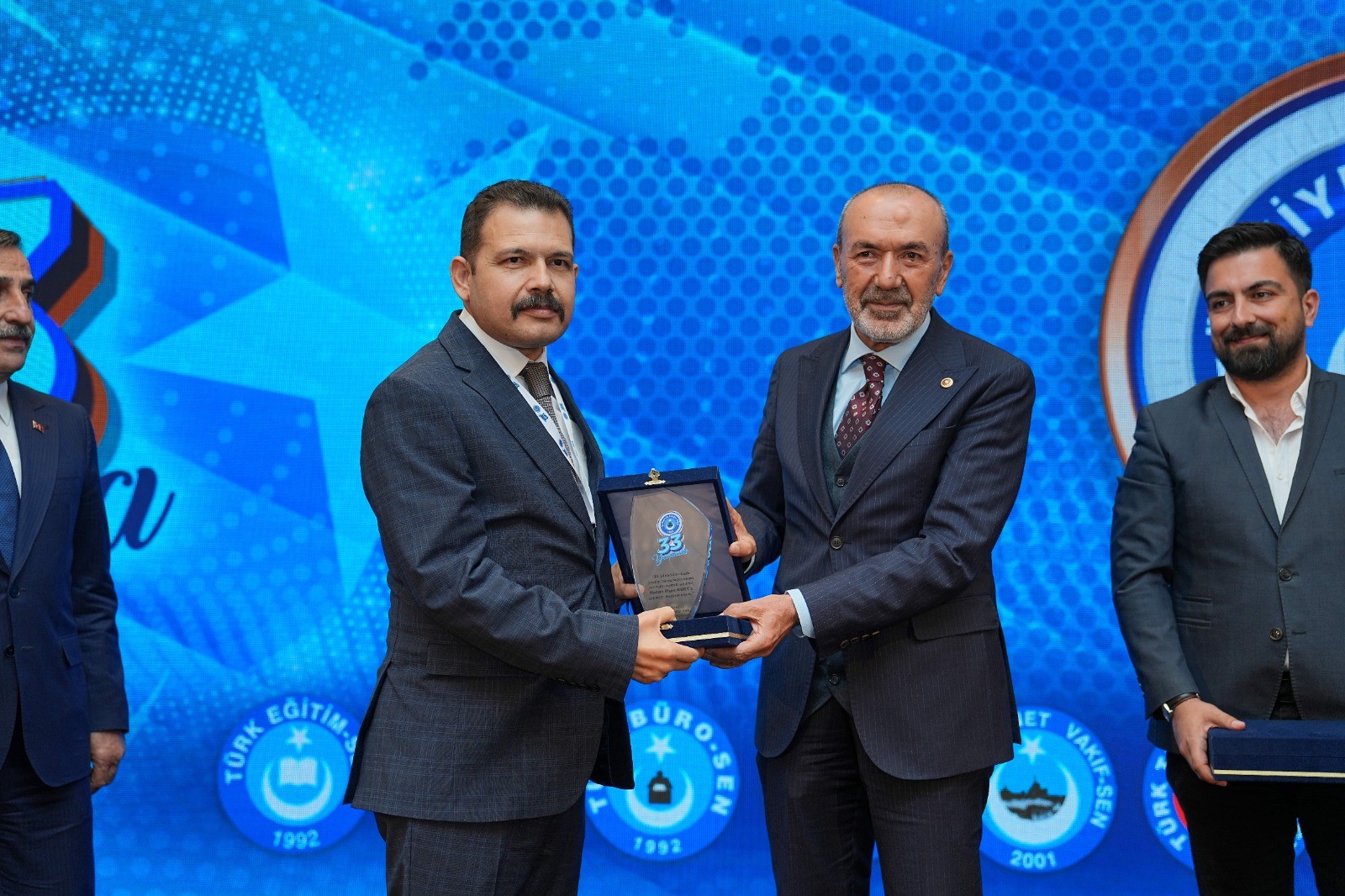 Programımızın sonunda kurucu Genel Başkanımız Ali Işıklar, Türkiye Kamu-Sen Marşımızın söz yazarı Türk Haber-Sen Genel Başkan Yardımcısı Hakab İlhan Kurt ve bestecisi sanatçı Rahmet Safa Ulusoy’a günü anısına plaket takdim edildi.