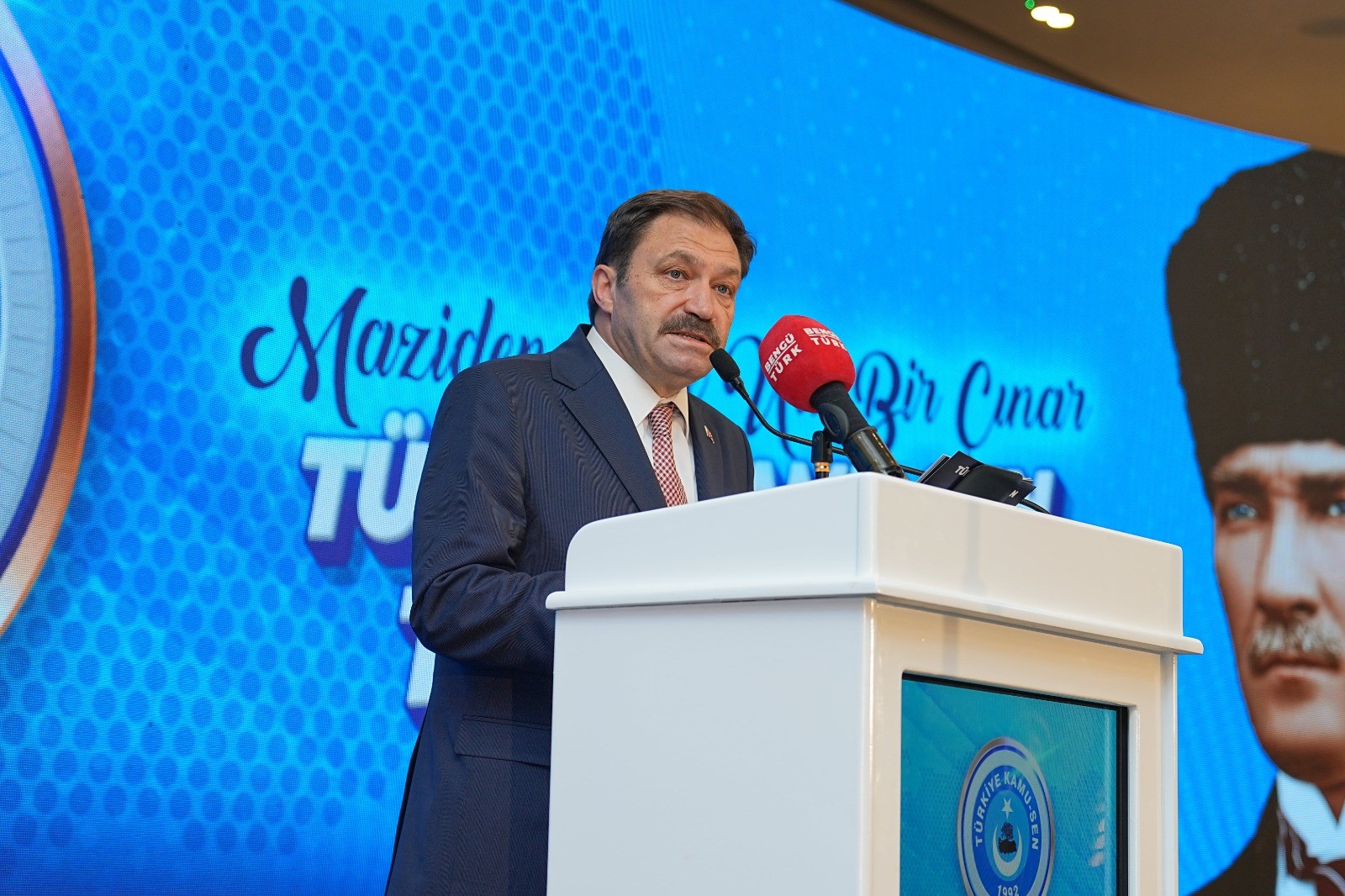 Ecdadımızın bize emanet ettiği bu devlet, bizim de evlatlarımıza bırakacağımız en kıymetli mirastır. Kamu görevlileri olarak bu mücadelede üzerimize düşen ne varsa yapmaya hazırız. Türkiye Kamu-Sen 33 yıldır, doğruluğun, mertliğin, erdemin adıdır. Bugün bir ulu çınar gibi kök salmışsa; bu, sizlerin emekleriyle mümkün olmuştur. Birlikte nice badireler atlattık. Şimdi yeni bir dönemin eşiğindeyiz. Ve biz biliyoruz ki: Türkiye Kamu-Sen; binlerce yıllık Türk milletinin devlet ve teşkilat kültüründen süzülüp gelen bir irfanın, vakar ve inancın çağdaş yansımasıdır. Türkiye Kamu-Sen olarak büyük Türk milletinin tarihinden aldığı güçle geleceğe doğru kutlu bir yürüyüşe çıktığını görüyoruz.  Bu yürüyüş; Türk milletinin bağımsızlık idealinin, ekonomik ve sosyal kalkınmanın, milli değerlerimizin yeniden ihyası ve yükselişi içindir.  Bu nedenle biz, kamu görevlilerini bu büyük vizyonun taşıyıcı gücü olarak görüyor; bu büyük idealimize yakışır bir kamu yönetimi, adil bir gelir dağılımı ve güçlü bir sosyal devlet anlayışının inşası için mücadelemizi kararlılıkla sürdürüyoruz. Türkiye Kamu-Sen, Türk milli hareketinin omurgasını oluşturan milli, ahlaki ve insani değerlerin yılmaz savunucusudur.