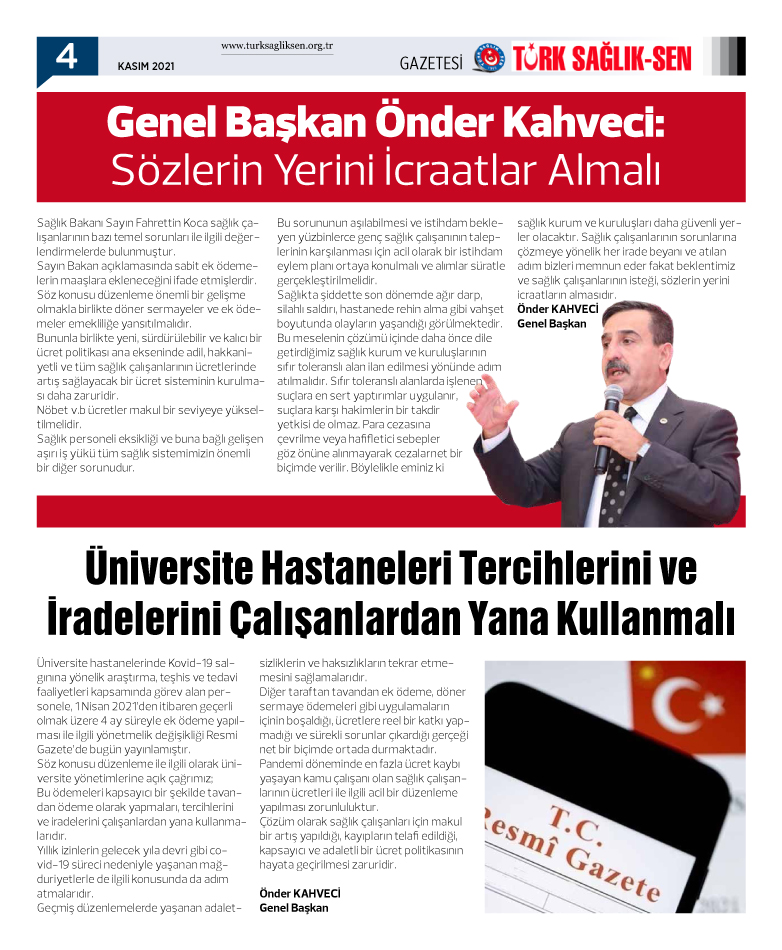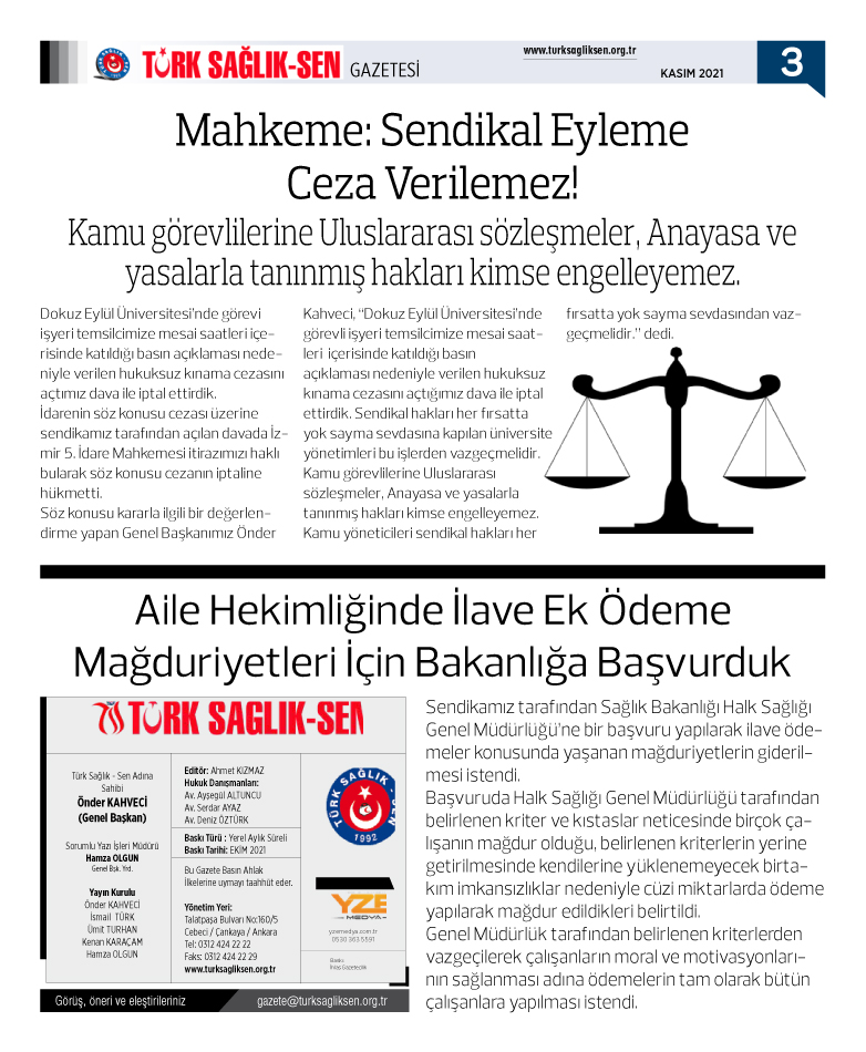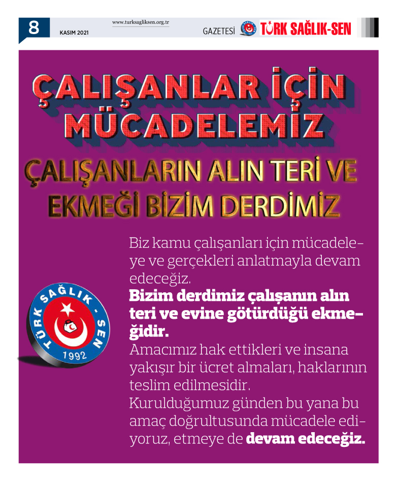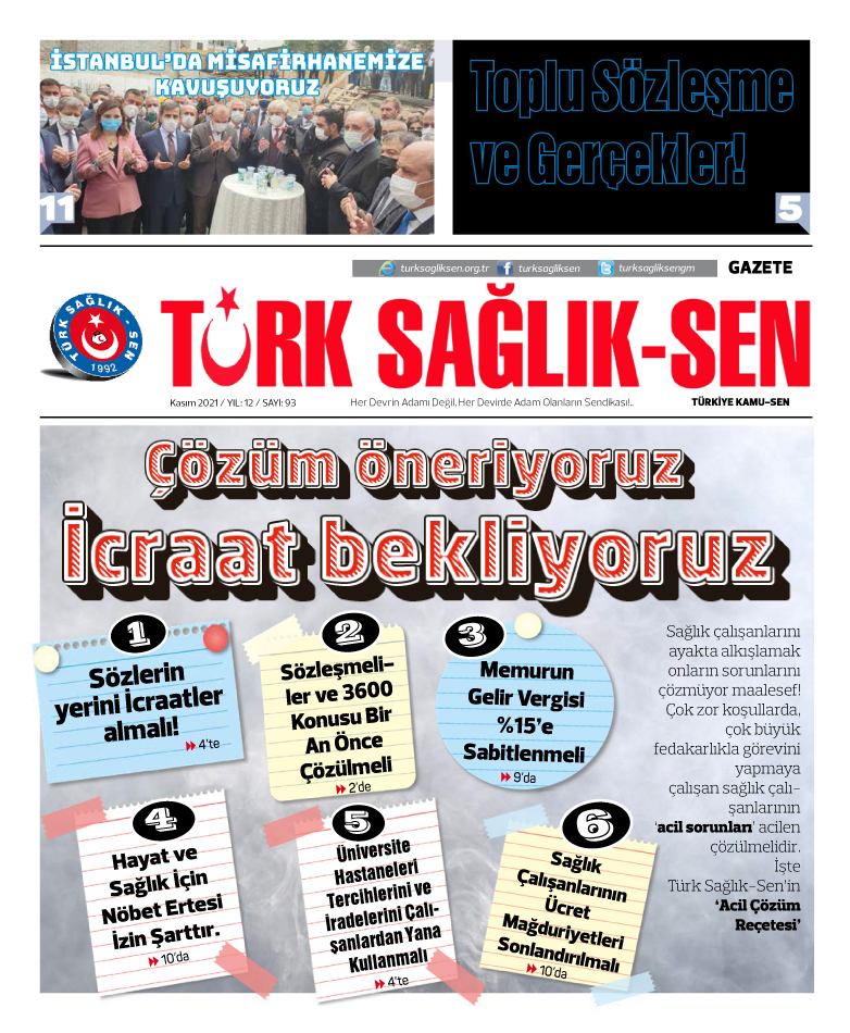 Türk Sağlık Sen gazetemizin 92. sayısı yayınlandı.
