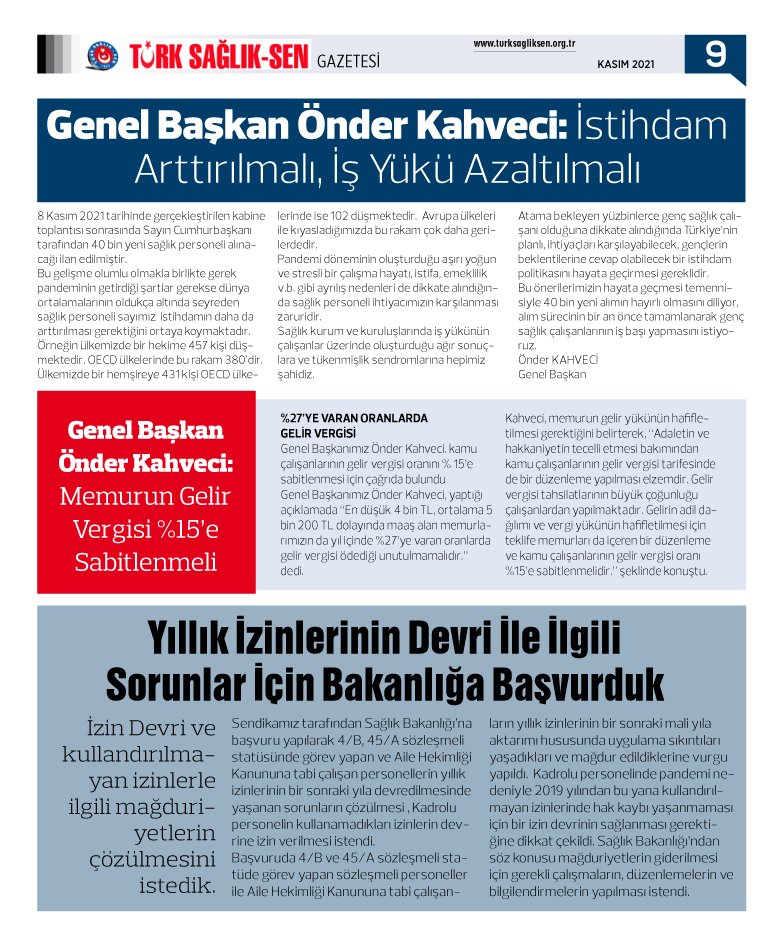 Türk Sağlık Sen gazetemizin 91. sayısı yayınlandı.